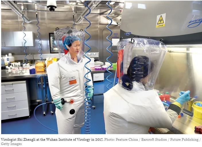 "Wuhan Institute of Virology, Wuhan, China (Zhengli Shi and Xingyi Ge) The Shi laboratory includes 4 rooms totaling (b) (4 , one equipped with two C02 incubators for tissue culture, one equipped facilities including with high speed centrifuge, 2 -20°C, 3 -80°C freezers, 2 PCR machines, 1 ELISA plate reader, one for molecule diagnosis equipped with two biosafety cabinets, and one normal laboratory equipped various small equipment items (mini-centrifuges, gel electrophoresis units, circulating adjustable water baths, and heat blocks). Also available to Dr. Shi's group is a fully equipped biosafety level 3 laboratory, a newly opened BLS-4 laboratory (the first in China) and Institute-supported facility center, which houses full-time staff and equipment for electronic microscopy, ultracentrifugation, confocal microcopy, and sequencing machine. Experiment conducted in BSL-2 Lab “Everything is assessed on a case-by-case basis.” Studies of SARS-CoV-1 and SARS-CoV-2, for instance, have to be done in BSL-3 labs, whereas the human coronaviruses that cause the common cold are handled under BSL-2 conditions. What about bat viruses? The Wuhan institute’s biosafety committees ruled a decade ago that while work with animals must be carried out in BSL-3, molecular and cell-culture work involving bat coronaviruses can be done in BSL-2, albeit in biosafety cabinets with air filtration and under negative pressure to keep viruses inside. Dr. Richard Ebright regards this as unsafe. Bat coronaviruses are, as he puts it,“uncharacterized agents” with unknown virulence and transmissibility. “The only acceptableapproach is to start with a high biosafety-level assignment … and to lower the biosafety-levelassignment only if and when it is determined it is prudent to do so,” he told me in an email." The FBI is the one agency whose views were identified in the Biden Report and it stated their was an accidental leak. Yet Carl Zimmer of the NYT continues to put one computer scientist's theory that the virus came from nature on the front page. Daszak is the number one proponent of the "it came from nature" theory to protect himself. Afterall, how could it be co-incidence that of all the places to first break-out, it was in the same city Daszak's experiments were being conducted on Corona viruses? WSJ on the Lab Leak theory