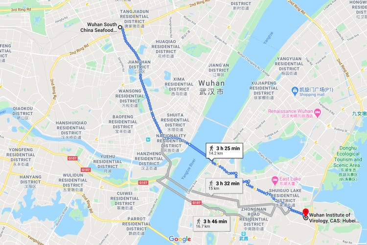 A group of virologists, many of whom receive funding from Fauci's NIH, or as we say in the venacular, were on Fauci's pad, wrote: "The suspicion that SARS-CoV-2 might have a laboratory origin stems from the coincidence that it was first detected in a city that houses a major virological laboratory that studies coronaviruses." They claim it started in the Wet Market there. A large city in China typically has a few hundred wet markets. Why this particular one near the WIV? If the disease came from rural China, as Daszak suggests, why didn't anyone get infected along the way? But because Trump the Hump said the pandemic was caused by a lab leak, it became a partisan issue.