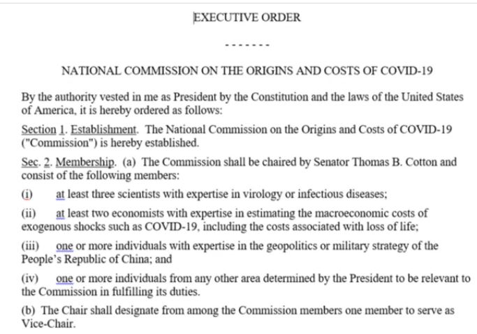 TRUMP WANTS TO FORM A COMMISSION TO LOOK INTO THE WIV LAB LEAK
